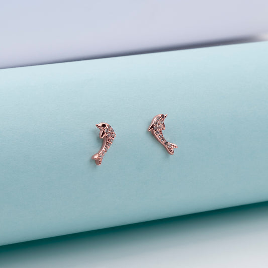 Ocean Charm Dolphin Rose Gold Earrings