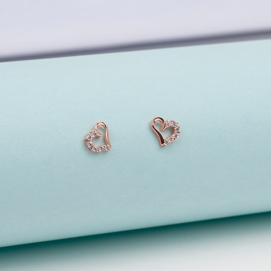Heart-Shaped Rose Gold Zirconia Studs