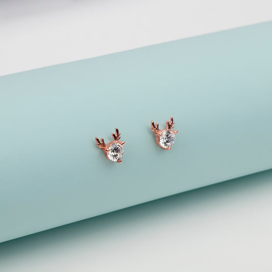Festive Reindeer Charm Rose Gold Earrings