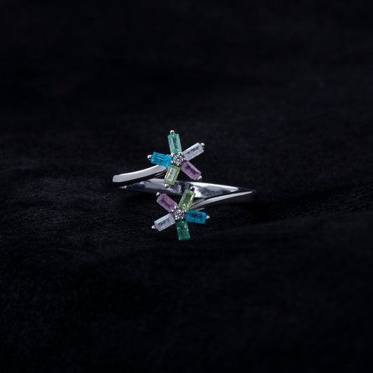 Twin Blossom Baguette Adjustable Ring